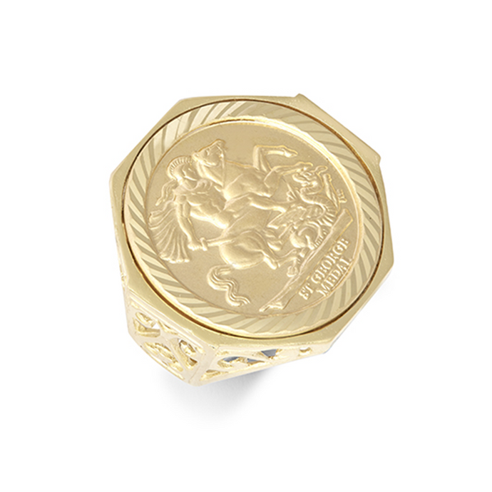 • 9CT SOLID GOLD, ST GEORGE HEX HALF SOVEREIGN