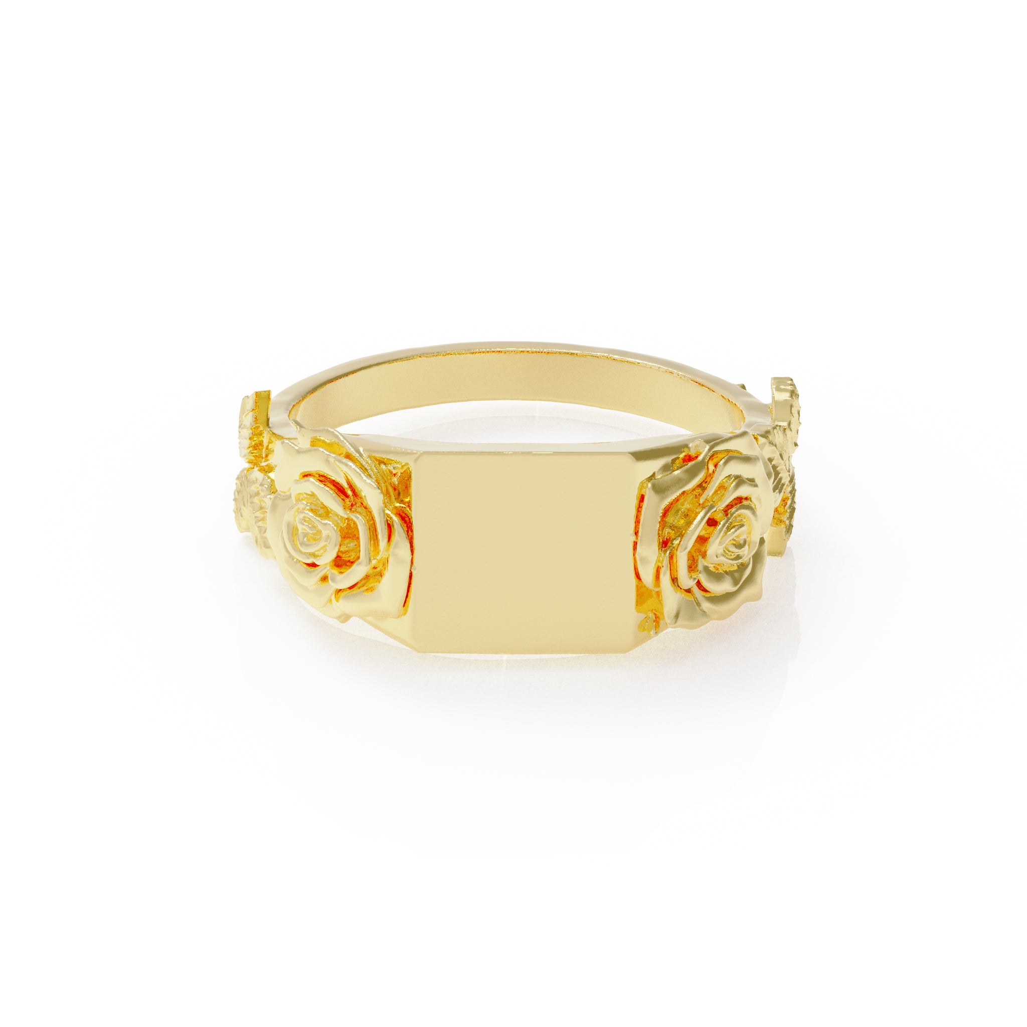This is a simple ring features a rose inspired by tattoo flash art and incorporates it into the shoulder section of the ring, creating intricacies whilst maintaining a minimalist appearance.