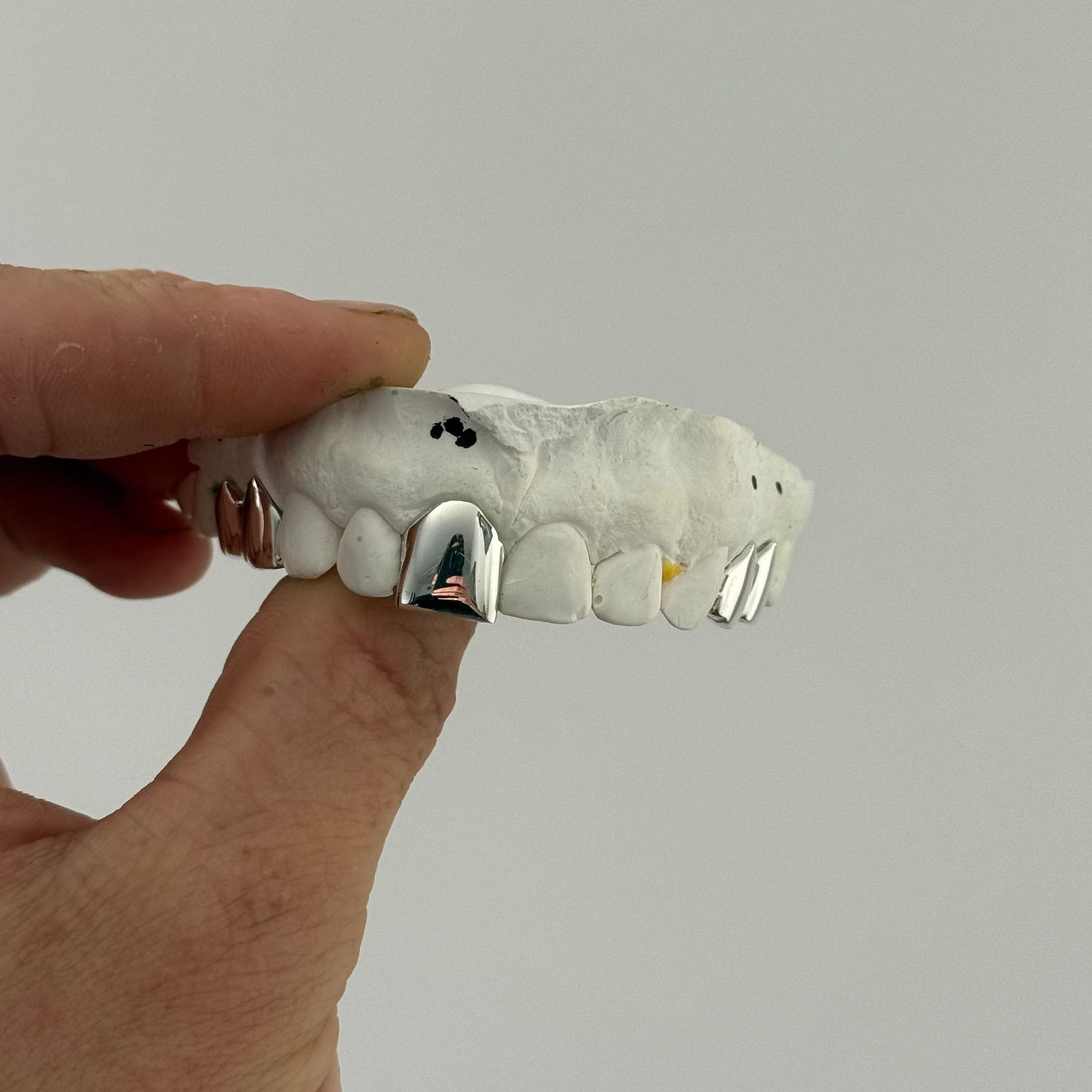 A mould kit will be sent to you upon your purchase along with instructions to help you take the perfect mould, and a job sheet to specify which teeth you want the design on and your desired metal colour.